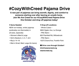 Our hashtag#CozyWithCreed Pajama Drive has officially kicked off, and we need YOUR help to make it a success!