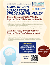 Join LTMHC and NAMI Metro Suburban for a two-part educational series designed to help parents, guardians, and caregivers learn how to better support the mental health of the young people in their lives.